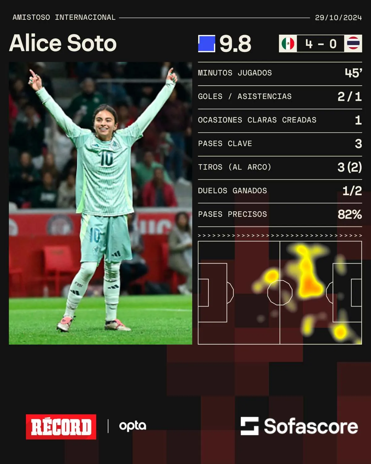 Al 90+3, Alice Soto hizo su doblete con la camiseta de México, y selló el triunfo ante las Tailandesas, y con un noche de ensueño para la jugadora de los Tuzos.