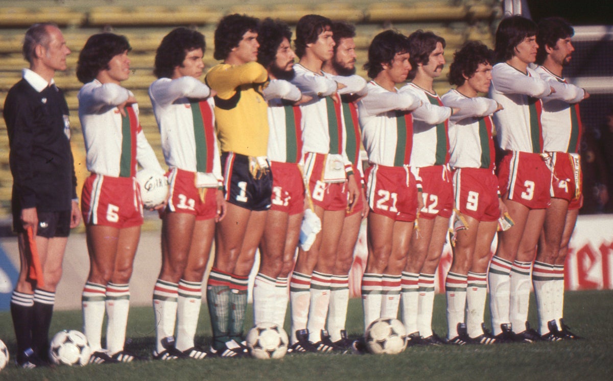 ARGENTINA 1978: Después de perderse el Mundial de Alemania 74, la Selección Mexicana volvió a la máxima justa futbolística en 1978 en Argentina y por primera vez, el representativo nacional tuvo uniforme patrocinado. La equipación mantuvo el verde en la playera y en las medias, así como con el blanco en el pantalón corto, pero con vivos en rojo en las tres prendas. Además, hizo su aparición en blanco por primera vez como color principal del jersey en la segunda equipación, con una franja verde y roja en el centro, el short en color rojo y las calcetas blancas.