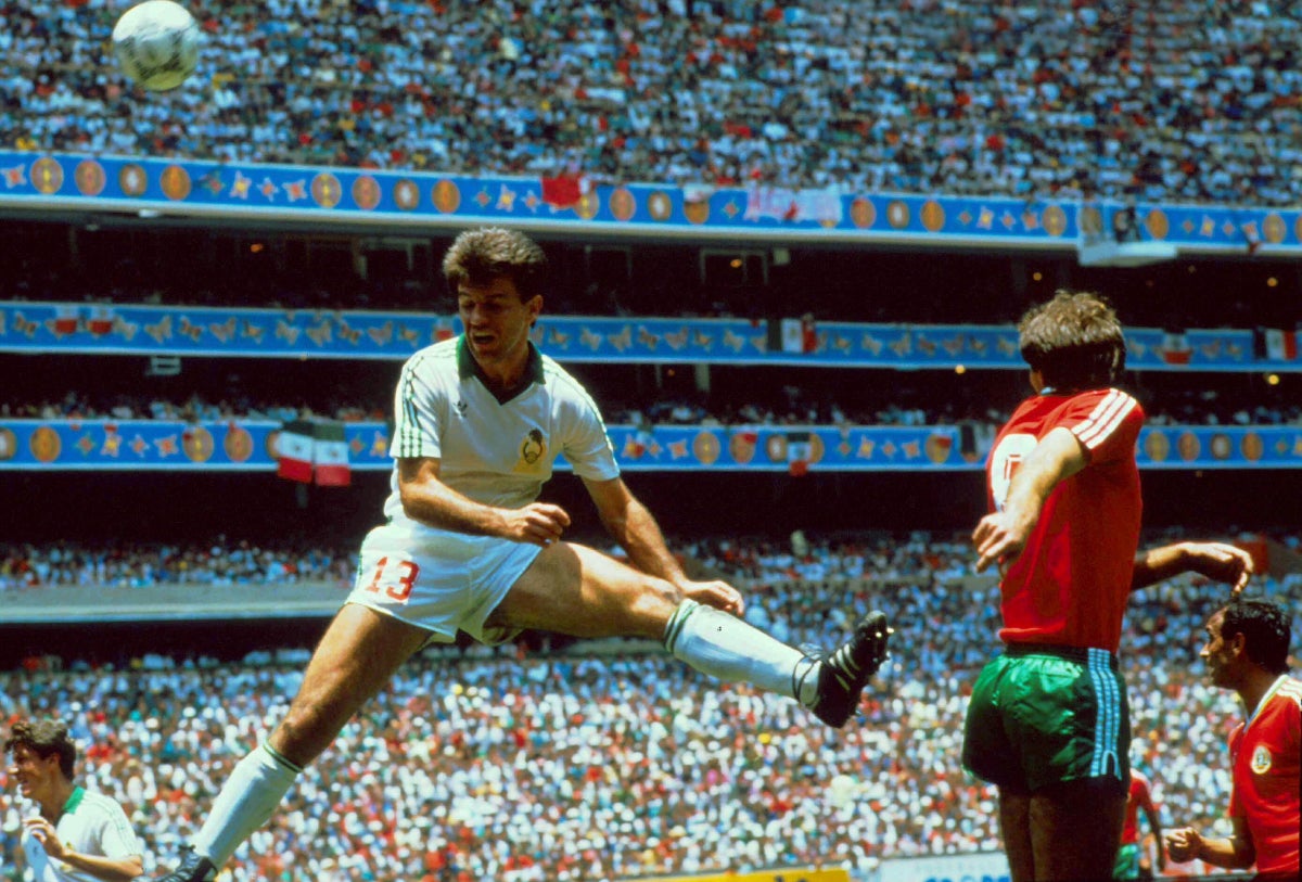 MÉXICO 1986: El seleccionado nacional se ausentó de España 82 y cuatro años después, ya como anfitrión, México adoptó el verde (jersey), blanco (short) y rojo (calcetas) de la bandera nacional, mientras que el segundo uniforme fue completamente blanco.