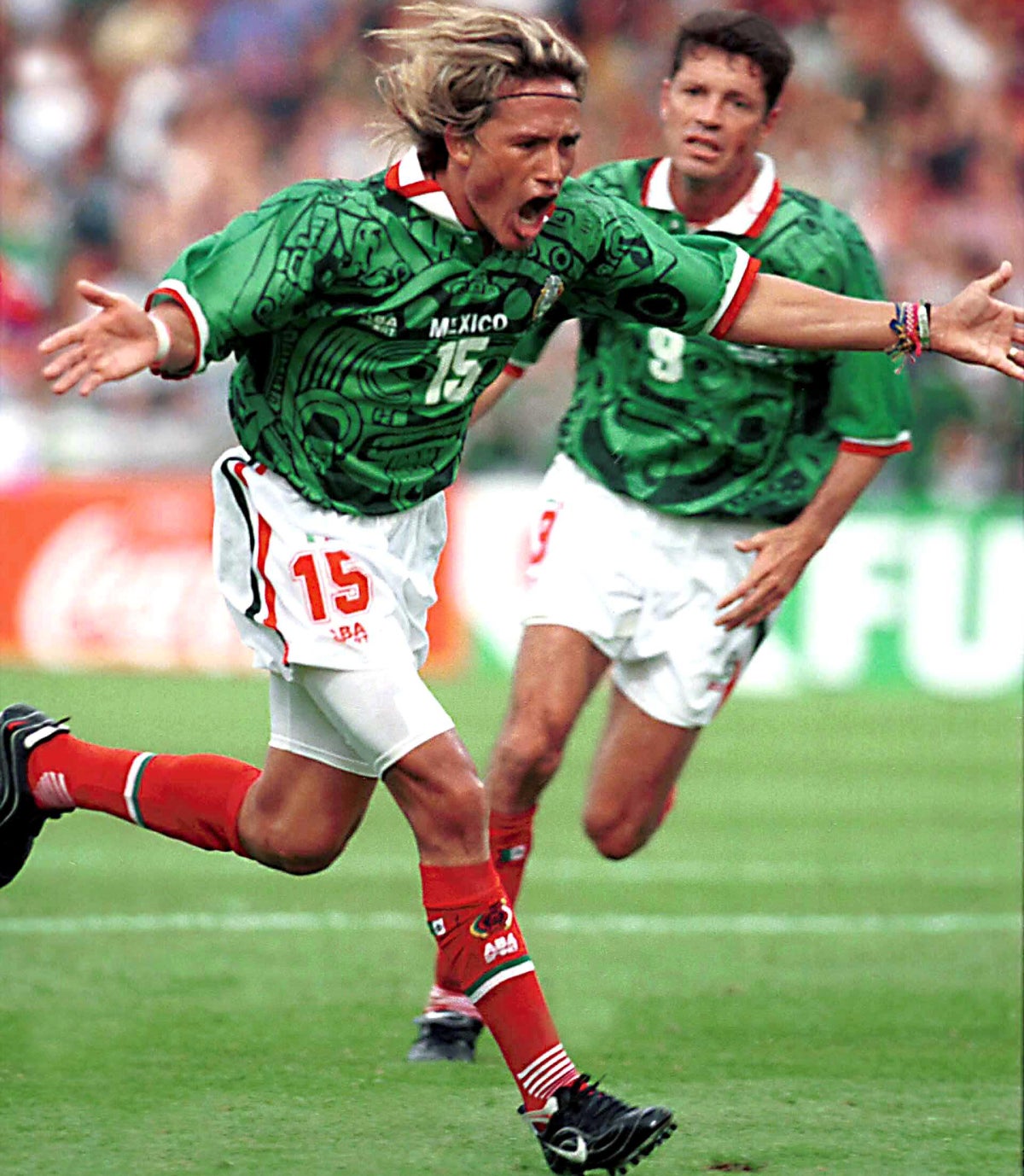 La tendencia del verde, blanco y rojo como primer uniforme se mantendría durante Estados Unidos 94 y Francia 98, aunque en este último con un detalle original, como fue el diseño del calendario azteca en el jersey, mismo que se retomó en esta ocasión para Norteamérica 2026. El segundo uniforme en Estados Unidos 94 fue un jersey en blanco con grecas prehispánicas en rojo, con el short también en rojo y medias blancas; mientras que para Francia 98 fue totalmente blanco.