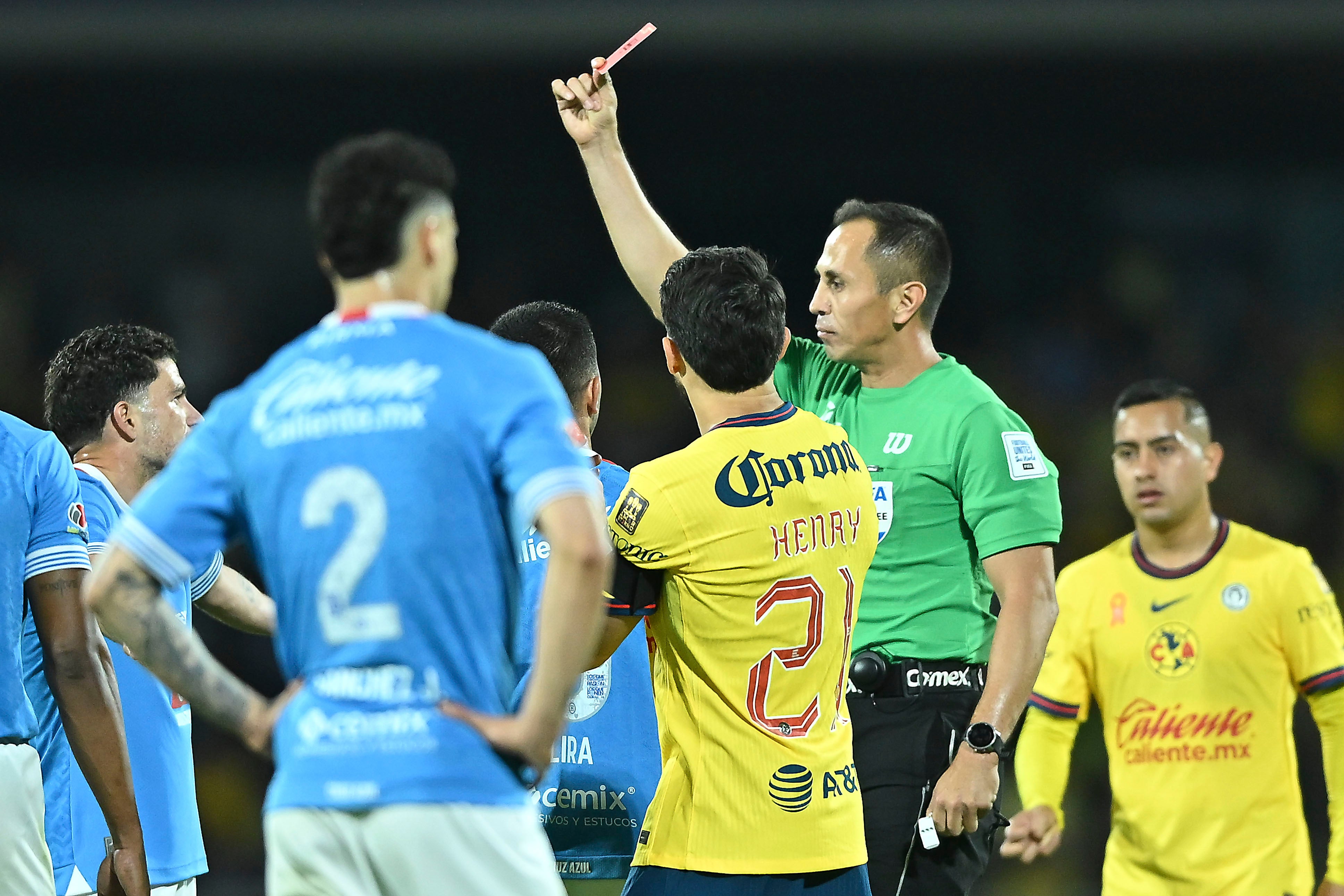 El silbante Luis Enrique Santander, tras revisar la jugada en el VAR, no dudó en mostrarle la tarjeta roja directa, dejando a Cruz Azul con diez hombres y encendiendo la polémica en el banquillo americanista, donde André Jardine protestó airadamente la decisión arbitral.
