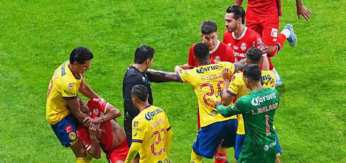 Momento tenso se vivió luego de algunos minutos del comienzo de la segunda parte, entre Toluca y América que tuvo ‘de todo’; sin embargo, no hubo represalias por parte de César Arturo Ramos Palazuelos quien decidió no sacar tarjetas a los jugadores involucrados.