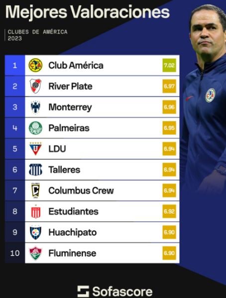 Sofascore publica cada año el rendimiento de las mejores plantillas del continente americano y esta vez el equipo más destacado fueron las Águilas.