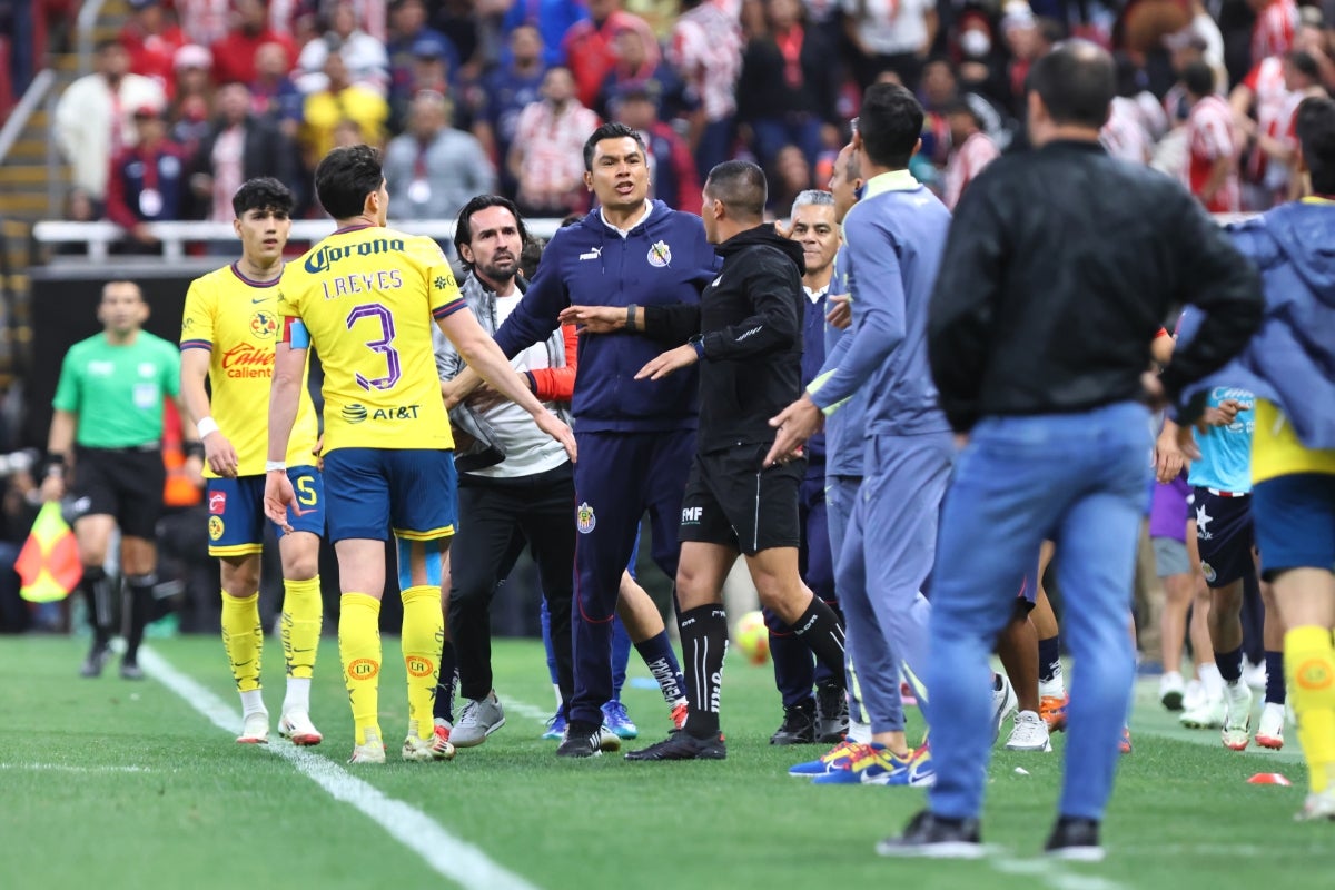 “Lamentar mucho se chocó con la cabeza de un jugador, le pega en la pierna de Kevin, pero es menos grave de lo que pudo haber sido, pero, esto no puede pasar”, agregó.