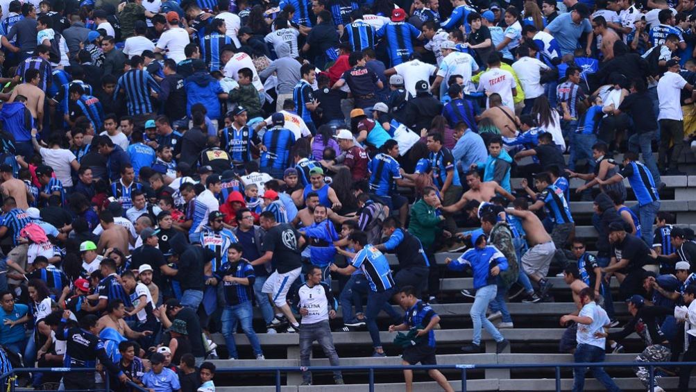 El partido entre los rojblancos y los Gallos Blancos fue suspendido al minuto 82, luego de que comenzara el enfrentamiento que obligó a cientos de aficionados a ingresar al terreno de juego para resguardarse.
