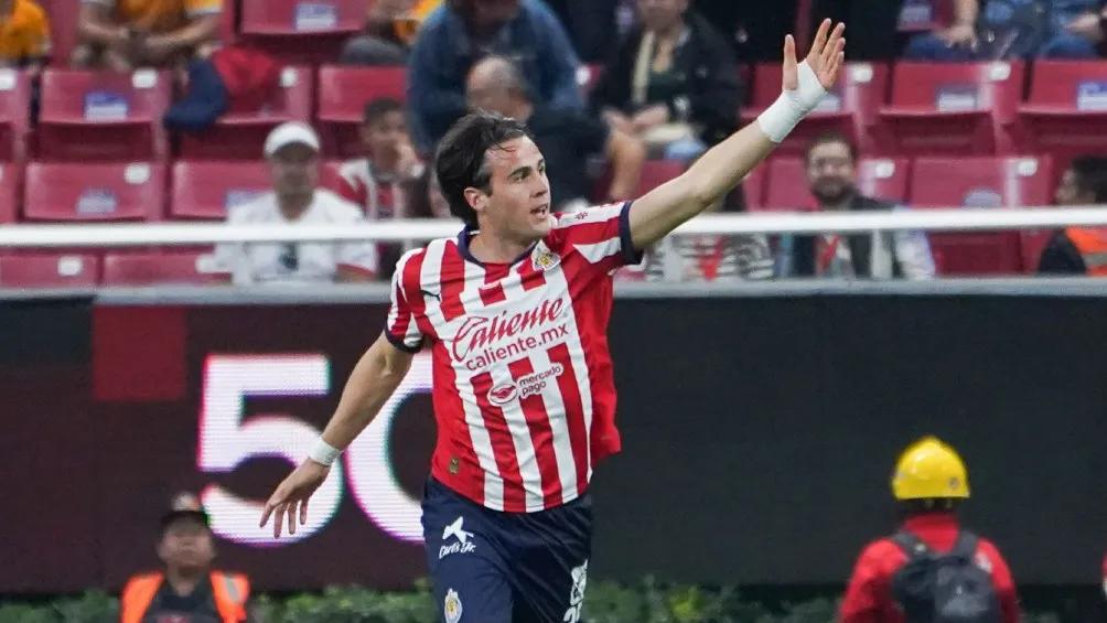 El juvenil Rojiblanco, aprovechó un rebote que dejó Nahuel Guzmán, tras un mano a mano con Cade Cowell, por lo que el mexiconeerlandés no dudó y empujó el esférico para colocar al frente al Guadalajara en el partido con su primer gol en la Liga MX.
