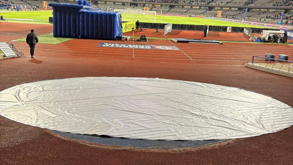En el escudo de Pumas que está en la pista de tartán, Cruz Azul colocó su escudo encima. Ante esto, personal del estadio les dejó en claro que no podían hacer eso, por lo que los obligaron a quitar dicha lona, aunque solo la voltearon para que no se vieran los colores del equipo cementero.
