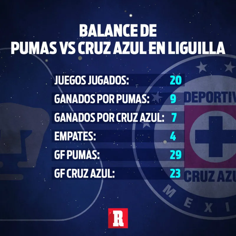 Pero será una serie atractiva sí por tratarse de dos grandes de la Liga MX, pero también por la rivalidad entre ambos, y el hecho de que, en cuanto a estadísticas, en la fase regular de cada temporada generalmente los celestes imponen su dominio, pero en Liguilla es todo lo contrario, ya que Universidad suele ser el que termina ganando.