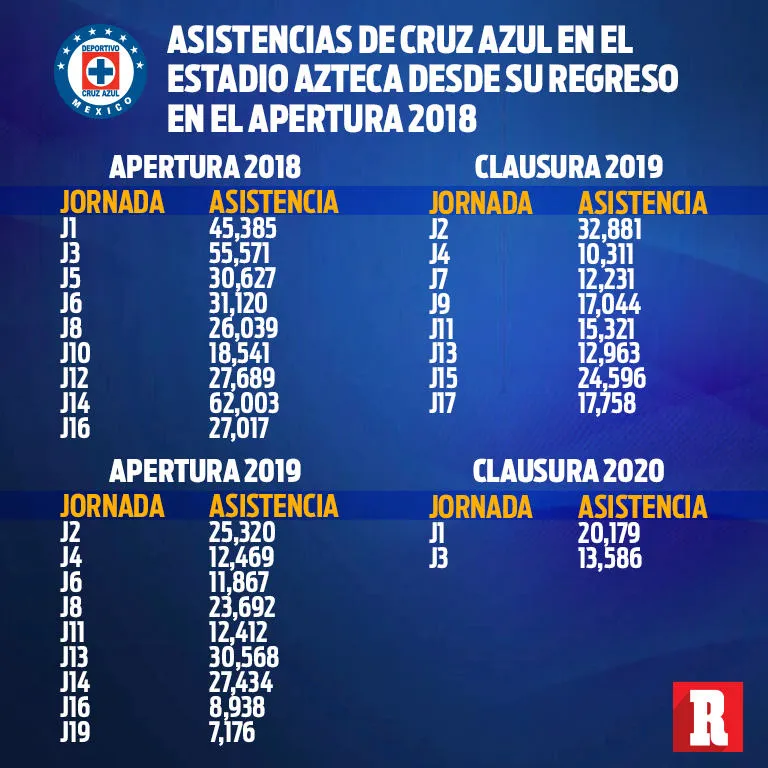 Desde la mudanza de Cruz Azul al Estadio Azteca, el equipo no había registrado una entrada tan baja en la primera jornada como la que tuvo en el juego que disputó ante Atlas, encuentro que además terminó a favor para los Rojinegros.