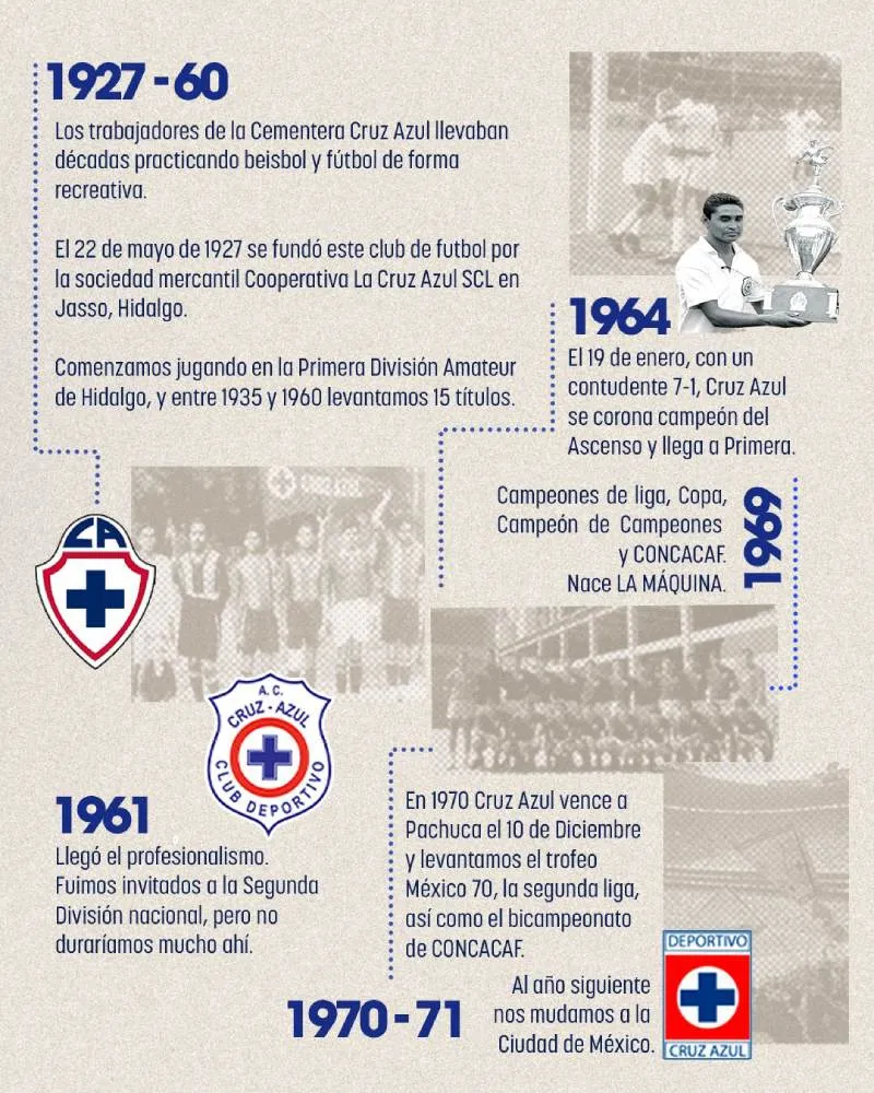 Cruz Azul celebra su 98 aniversario. Consolidado como uno de los clubes más emblemáticos del futbol mexicano, La Máquina nació grande y hoy está de fiesta. Fundado en 1927 en Jasso, Hidalgo -hoy Ciudad Cooperativa-, el equipo vio la luz como una extensión de la identidad de los trabajadores de la cementera que le dio nombre.