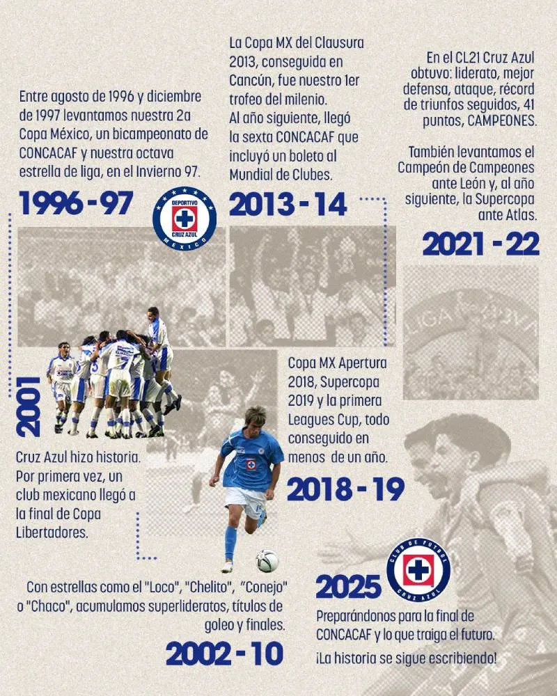 En la actualidad, el equipo mantiene su protagonismo en la Liga MX y disputa la Liga de Campeones de la CONCACAF, reafirmando su ambición y competitividad en el panorama futbolístico. A 98 años de su fundación, Cruz Azul sigue escribiendo su historia con la vista puesta en nuevos títulos.