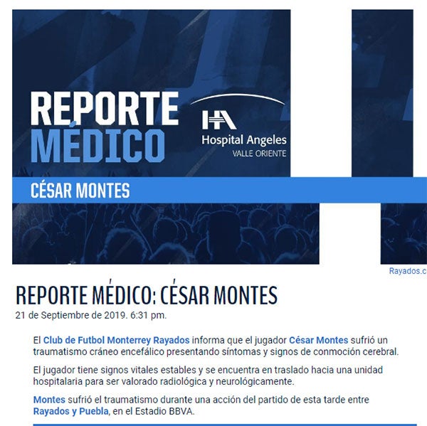 El drama se hizo presente en el Estadio de Rayados después de que César Montes quedará inconsciente por un choque de cabezas con Maximiliano Perg en el juego contra Puebla.