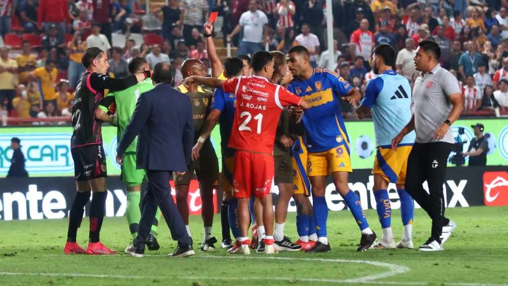 Ante las gesticulaciones y provocaciones del guardameta, jugadores de los Rayos se acercaron para reclamarle, mientras que Jesús Angulo trató de llevarse a Nahuel Guzmán justo para evitar que la situación escalara a mayores. No obstante, el silbante Guillermo Pacheco decidió expulsarlo.