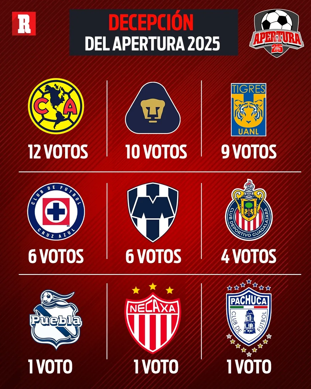 Cruz Azul: 6 votos