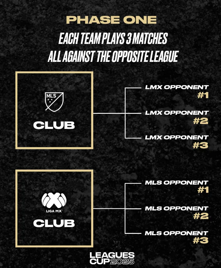 Durante la Primera Fase, cada club disputará tres partidos entre el 29 de julio y el 7 de agosto, en una programación intensa que comprende un total de 54 encuentros entre equipos mexicanos y estadounidenses. Por este motivo, la Liga MX se detendrá temporalmente para permitir la participación de sus clubes en este torneo internacional.