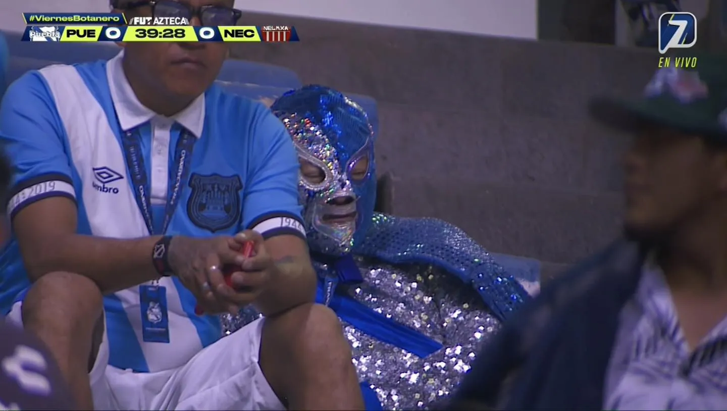 A lo largo de la transmisión del Puebla vs Necaxa en TV Azteca, las cámaras mostraron su atención en varias ocasiones para Súper Camote, un aficionado al Puebla que suele acudir al estadio a ver a su equipo con un disfraz de luchador con los colores del conjunto poblano.