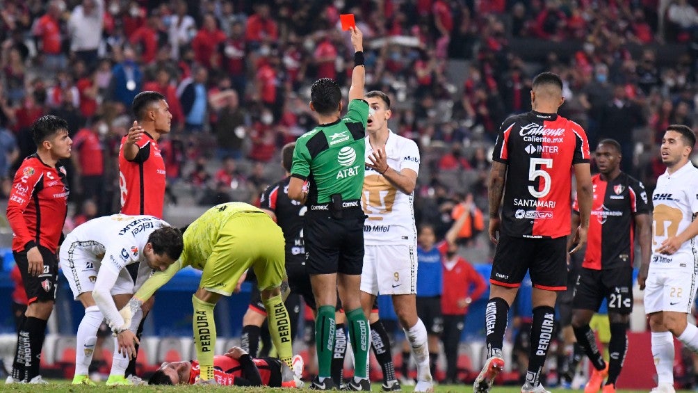 Durante la Semifinal de Vuelta del Apertura 2021 entre Atlas y Pumas se dio una polémica arbitral en dos jugadas que involucraron al atacante universitario Juan Ignacio Dinenno; en la primera, Jorge Antonio Pérez Durán, arbitro del juego, no sancionó penalti por un codazo de Anderson Santamaría sobre el atacante y, minutos después, expulsó al jugador auirazul por un golpe a Jesús Angulo al intentar rematar de chilena.
