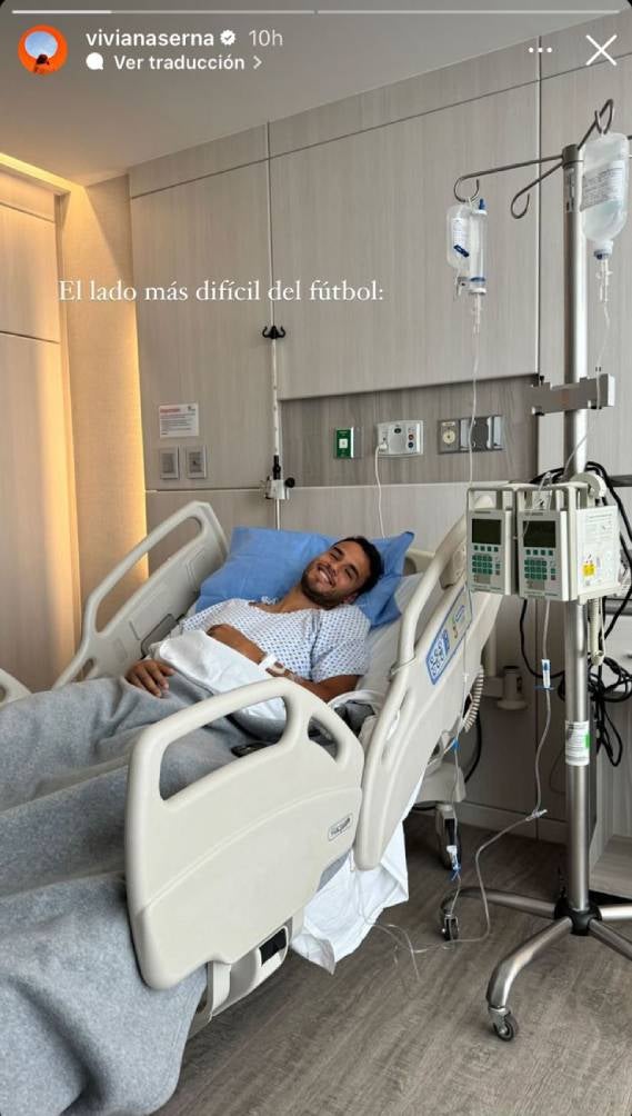 Las fotos las subió Viviana alrededor de las 23:00 horas de este martes 10 de octubre, y en redes sociales ha llamado la atención que el club no haya informado de ninguna lesión. Además, algunos aficionados han lamentado la situación del jugador, pues consideran que estaba en un buen momento futbolístico.