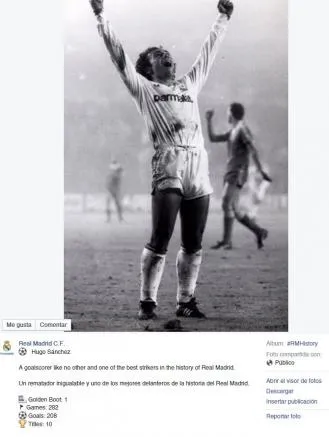 El conjunto merengue subió una foto a su cuenta de Facebook donde pusieron los logros que tuvo 'Hugol' con el equipo y el mensaje "Un rematador inigualable y uno de los mejores delanteros en la historia del Real Madrid".