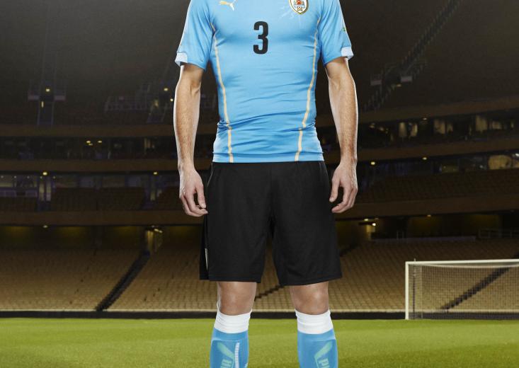 El defensa Diego Godín modela la playera de Uruguay - Foto : PUMA