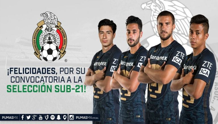 Cuatro juveniles de Pumas de la UNAM fueron convocados por el entrenador de la Selección Mexicana de Futbol Sub 21, Mario Arteaga, y formarán parte del representativo nacional que disputará un Torneo Internacional en China, del 4 al 15 de noviembre.