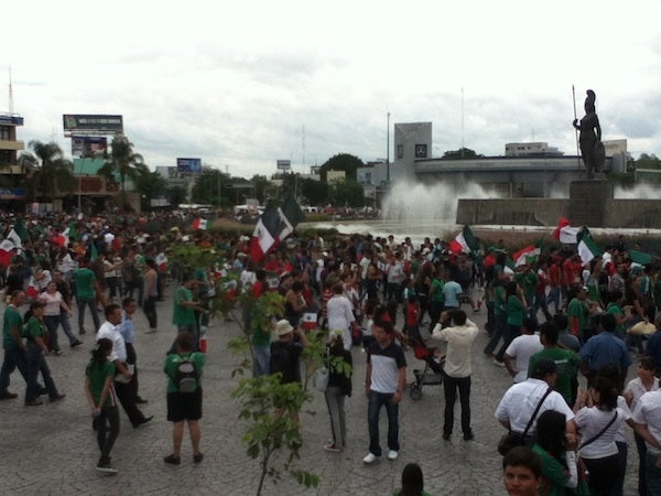 Familias enteras, niños y adultos de todas las edades se han congregado en los alrededores de la Minerva para gritar, cantar y correr, en una celebración que por más de dos horas se ha dado entre los tapatíos.
