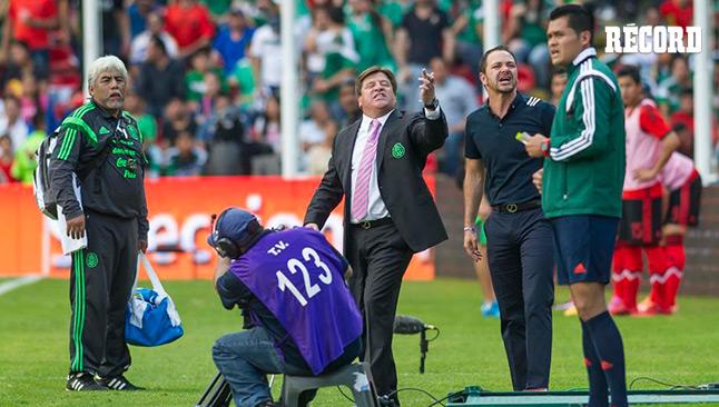 El partido entre México y Panamá se calentó y el técnico de la Selección, Miguel Herrera intercambió insultos con el auxiliar de Hernán Darío Gómez, timonel de Panamá, e incluso lo retó a los golpes.