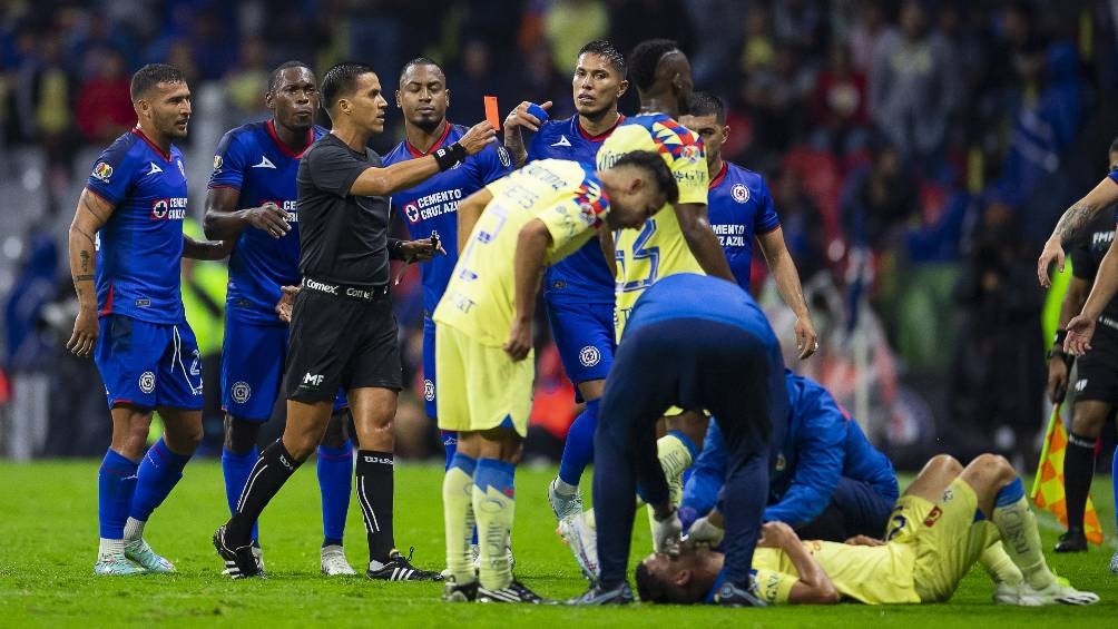 El Clásico Joven entre América y Cruz Azul se juega con intensidad y Charly Rodríguez perdió la cabeza al soltar un codazo a Richard Sánchez que le costó la expulsión del partido.