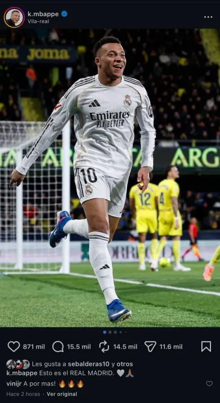 Después del partido, Mbappé reaccionó en redes sociales a la publicación del club merengue. El atacante compartió una imagen del encuentro y acompañó el mensaje con la frase: “Esto es el Real Madrid”, en referencia al triunfo conseguido en un escenario complicado del campeonato español.