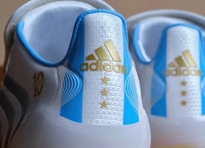 En la parte posterior del botín aparecen tres estrellas doradas, cada una representando los tres Campeonatos del Mundo obtenidos por Argentina (1978, 1986 y 2022), un guiño emocional que eleva el significado de esta edición más allá de lo puramente deportivo.