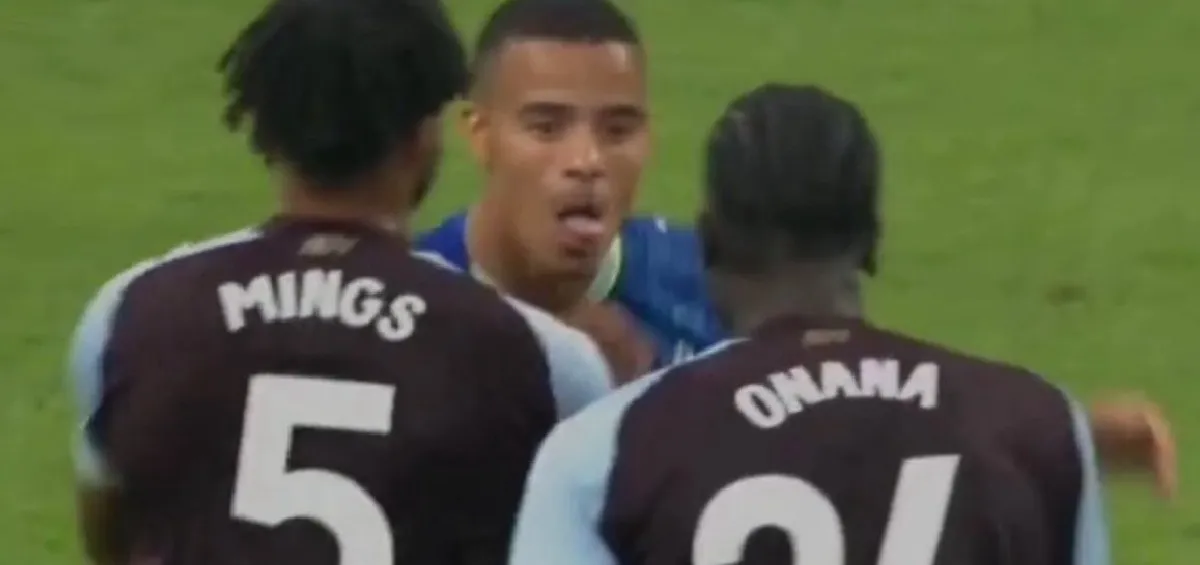Onana no pasó más allá de hacerse sentir sobre el atacante inglés, pero de la nada llegó Tyrone Mings de manera desafiante quien fue directamente con el jugador del Olympique de Marsella y lo agarró del cuello del jersey por varios segundos.