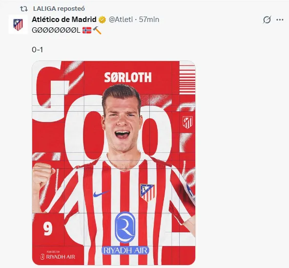 Ya en la segunda parte los goles llegaron al campo; primero con Alexander Sorloth, quien a pesar de que su autogol no contó, tuvo su revancha en el terreno de juego, aplicando la 'ley del ex' por medio de un cabezazo para vencer al guardameta Álex Remiro; no obstante, la ventaja de los Colchoneros, no duró mucho.