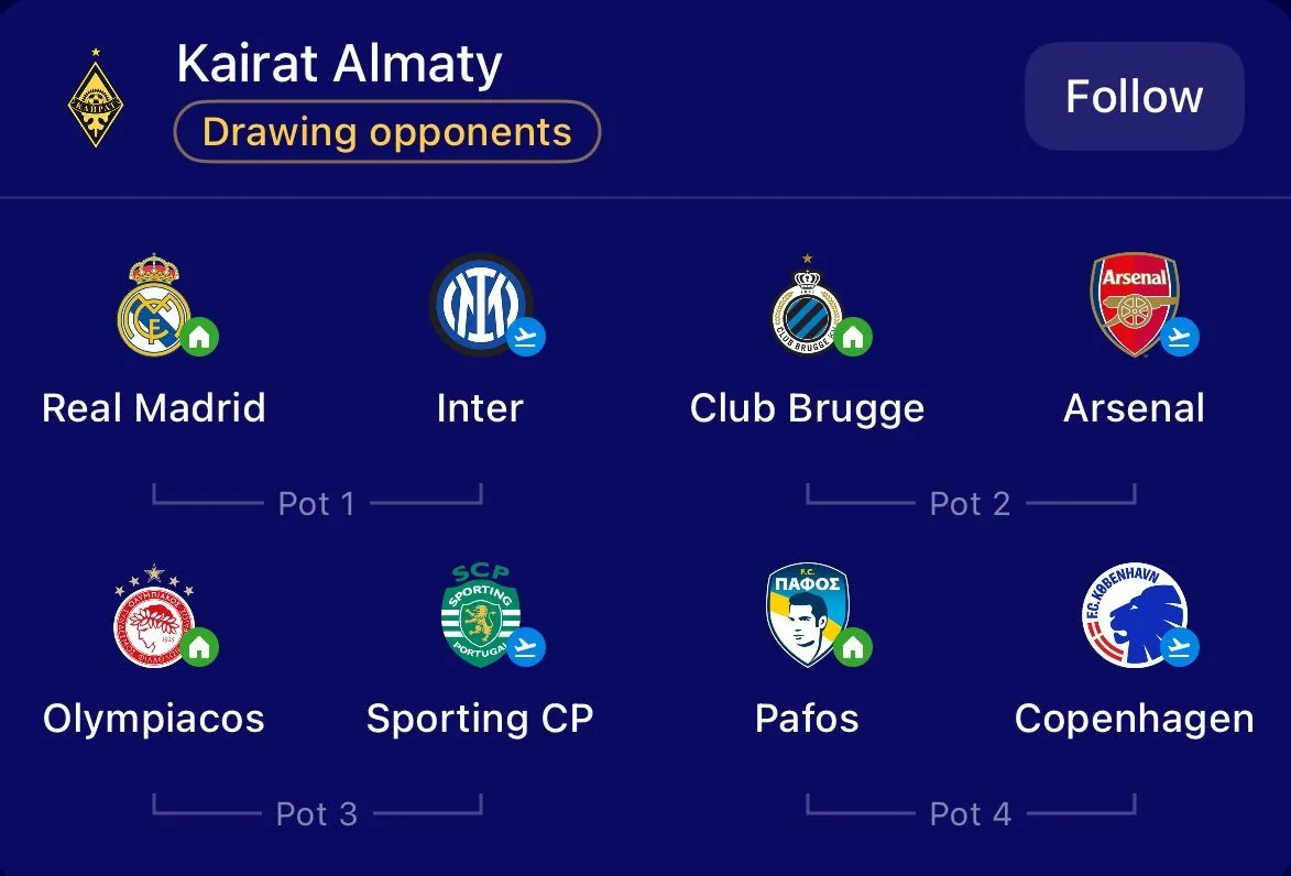 Como cada año, se llevó a cabo el sorteo de la UEFA Champions League y como comienza a hacerse costumbre, los equipo debutantes se llevaron los reflectores, uno de ellos el Kairat Almaty, equipo de la liga de la Liga premier de Kazajistán que sorprendió al mundo al derrotar en la etapa preliminar al Celtic, para meterse a su primer torneo de Europa.