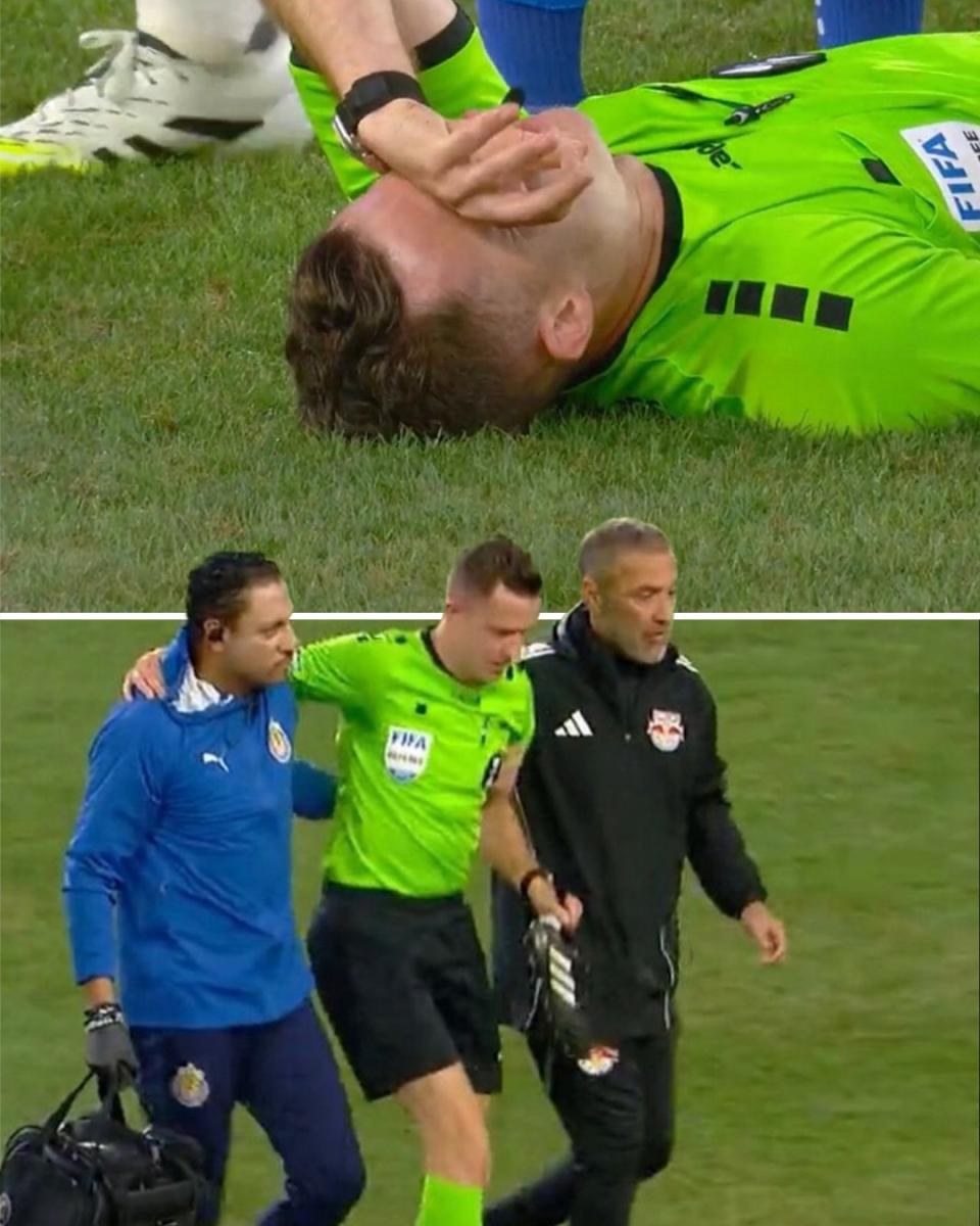 En un hecho pocas veces visto en el futbol, el árbitro central del duelo entre Chivas y New York Red Bulls, se lesionó poco tiempo después de que inició el partido, por lo que el silbante fue atendido y posteriormente abandonó el terreno de juego.