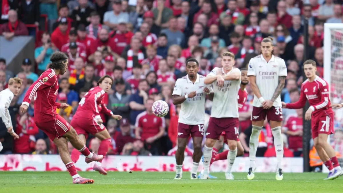 Inesperadamente, Liverpool se adelantó en el marcador al mismo estilo que domina el Arsenal: en un balón parado. Dominik Szoboszlai disparó de larga distancia en un tiro libre y venció al arquero Gunner, David Raya. El festejo fue eufórico al saber que se trata de un resultado de suma importancia para defender la corona de la Premier League.