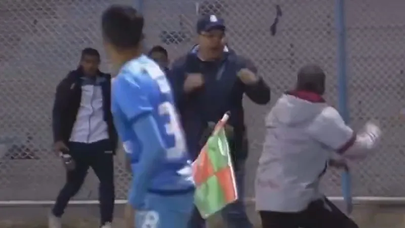 Otro momento captado por la televisión fue la fuerte discusión entre un miembro del cuerpo técnico de Blooming y el entrenador de Real Oruro, Marce Robledo, que terminó con un empujón del primero que derribó al estratega local. El conflicto incluso se extendió hacia la zona de ambulancias, ubicada en la puerta de emergencia del estadio.