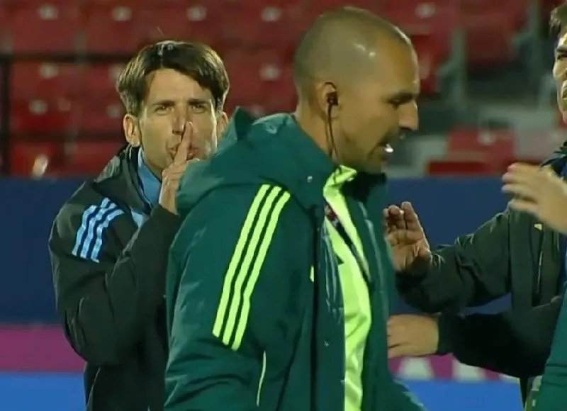 La seña fue muy evidente incluso la transmisión de la FIFA captó el momento y con dicho gesto terminó por calmar el conato que se empezaba a gestar con los reclamos airados por parte del cuerpo técnico encabezado por Arce.