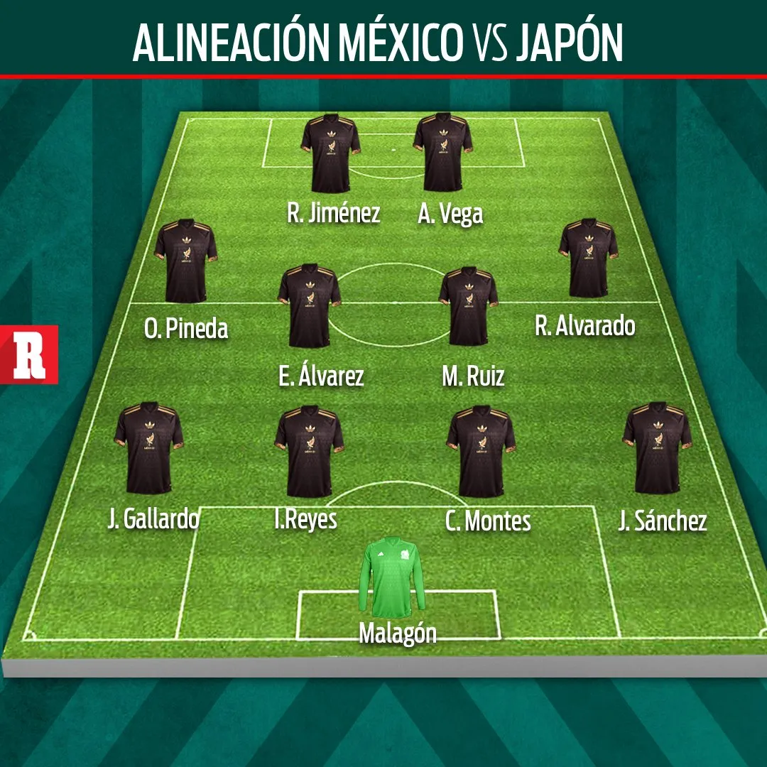 El once inicial del Tricolor estará conformado por: Ángel Malagón; Jorge Sánchez, César Montes, Johan Vásquez, Jesús Gallardo; Edson Álvarez; Marcel Ruiz, Orbelín Pineda; Roberto Alvarado, Raúl Jiménez y Alexis Vega.