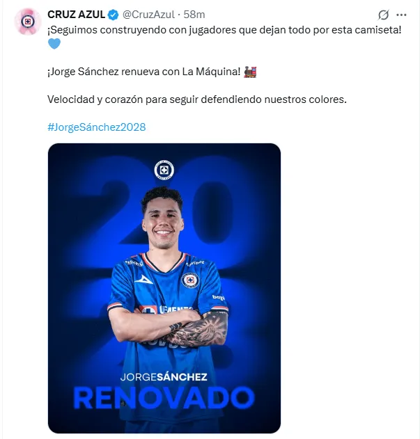 Tal y como lo prometió, el equipo de Cruz Azul planea seguir su proyecto a largo plazo renovando a sus estrellas, tal y como ya había sucedido con Erik Lira, Ángel Sepúlveda, Rodolfo Rotondi, ahora fue Jorge Sánchez el futbolista que anunció su permanencia hasta 2028, mostrándose muy feliz.