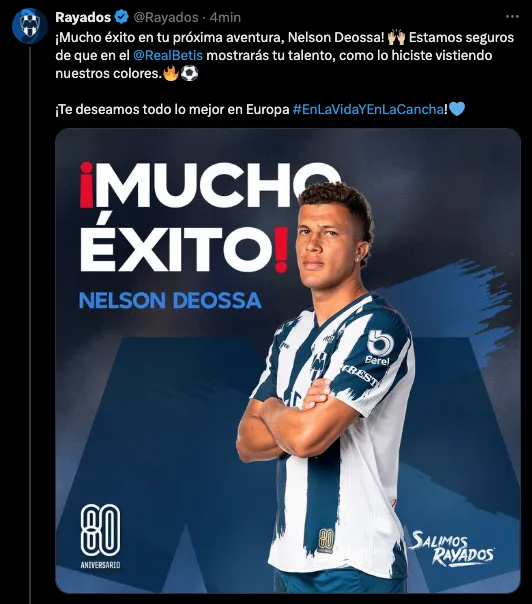 El contrato del colombiano será por cuatro años, pero el equipo regiomontano se quedará con un porcentaje en caso de que Real Betis venda al mediocampista en un futuro. La oferta terminó por convencer a Rayados.