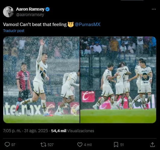 Aaron Ramsey brilló en medio de una tormentosa lluvia en Ciudad Universitaria, el galés entró de recambio y firmó su primer gol con los Pumas que significó los tres puntos para los universitarios en la séptima fecha del Apertura 2025.