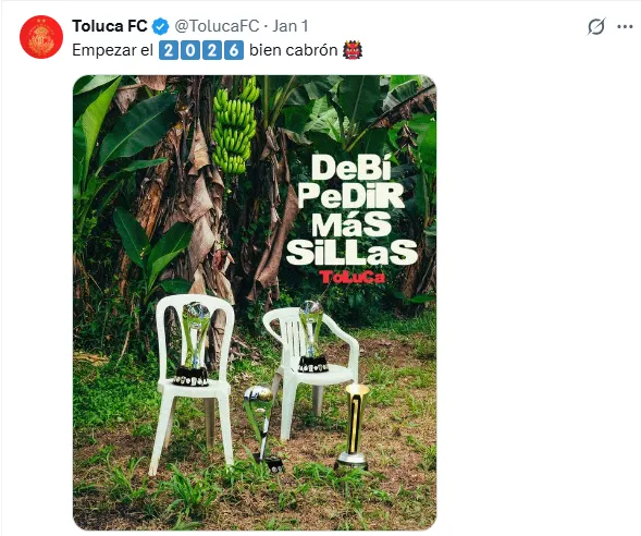 El conjunto del Estado de México tomó esa misma idea, pero la llevó un paso más allá. Mientras el América jugó con la escasez simbólica para ilustrar su triplete, los Diablos optaron por exhibir la abundancia, alineando cuatro trofeos y un mensaje que sintetizó el orgullo por una temporada irrepetible.