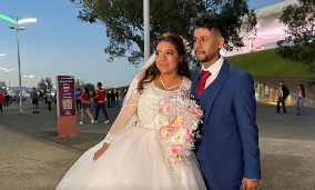 Una pareja de recién casados presentes para el Clásico Nacional.