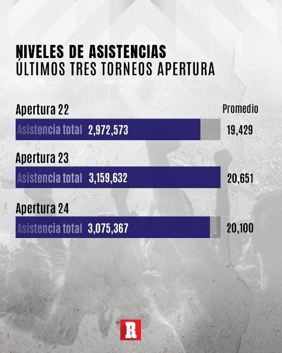 El Apertura 2024 presentó altas y bajas en términos de asistencia a lo largo del torneo, sin embargo, terminó apenas por debajo de su similar de 2023 y superó los tres millones de asistentes.