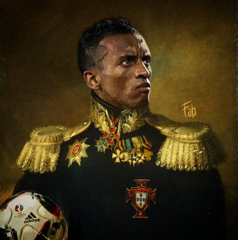 Nani muestra con orgullo el escudo de Portugal