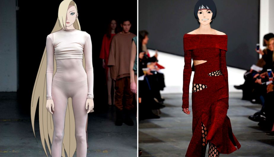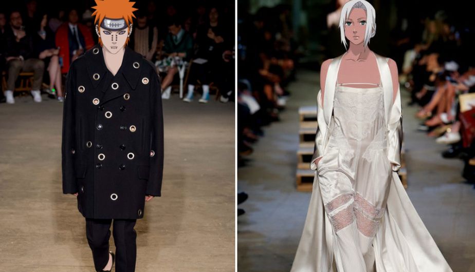 Yahiko Pain con un gran abrigo negro, y Mabui con un conjunto blanco