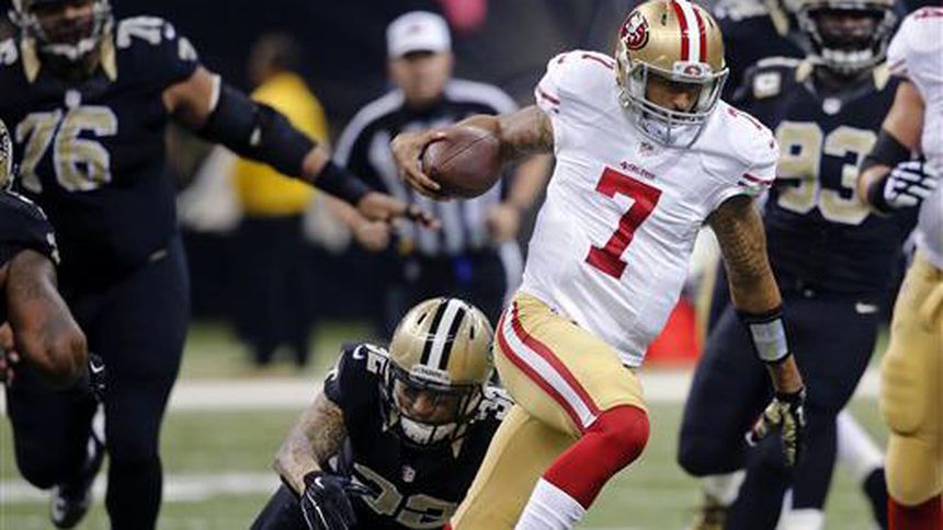 Colin Kaepernick completó un pase de 51 yardas en cuarto down para mantener vivo el ataque que empató el partido, y Phil Dawson convirtió un gol de campo en el tiempo extra, lo que permitió a los 49ers de San Francisco superar el domingo 27-24 a los Santos de Nueva Orleáns.