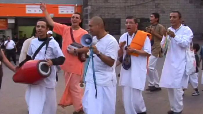 Uno de los episodios más recordados del día fue la intervención de integrantes del movimiento Hare Krishna, quienes se acercaron a la zona con el objetivo de calmar a los participantes.