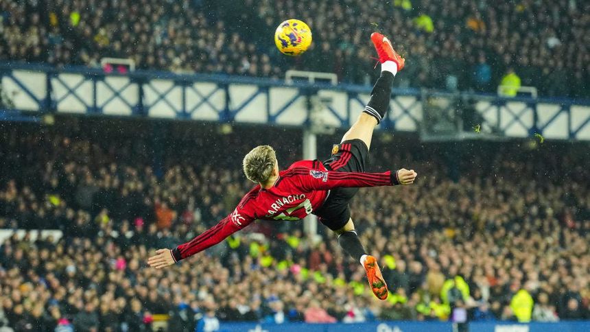 ¡A lo CR7! Garnacho anotó un golazo de Chilena en el Manchester United vs Everton