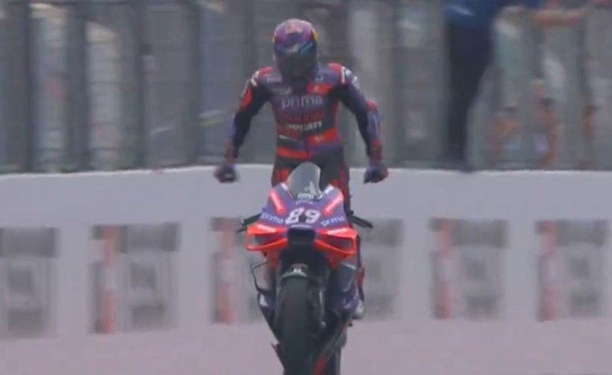 El español Jorge Martín se llevó el primer lugar de la carrera, pero lo que acaparó la atención de todos fue el festejo de Martín al saberse ganador.
